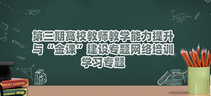 为深入贯彻落实习近平新时代中国特色社会主义思想和全国教育大会精神,增强教育服务创新发展能力,坚持以教学为中心,培养党和人民满意的高素质专业化创新型教师队伍,根据《中共中央 国务院关于全面深化新时代教师队伍建设改革的意见》(中发〔2018〕4号)的文件精神,国家教育行政学院推出第三期高校教师教学能力提升与“金课”建设专题网络培训,培训对象为普通高等学校(含高职高专院校、民办高校)教师,围绕改革动态、新理念与新方法、“金课”建设、综合素质培养等设置课程模块,供广大教师学习参考。